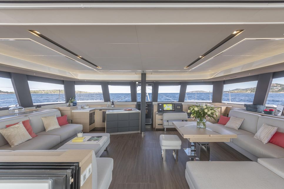 Modern accommodation on board spreads over four cabins with ensuite bathrooms each, including one master suite and three queen-doubles.
