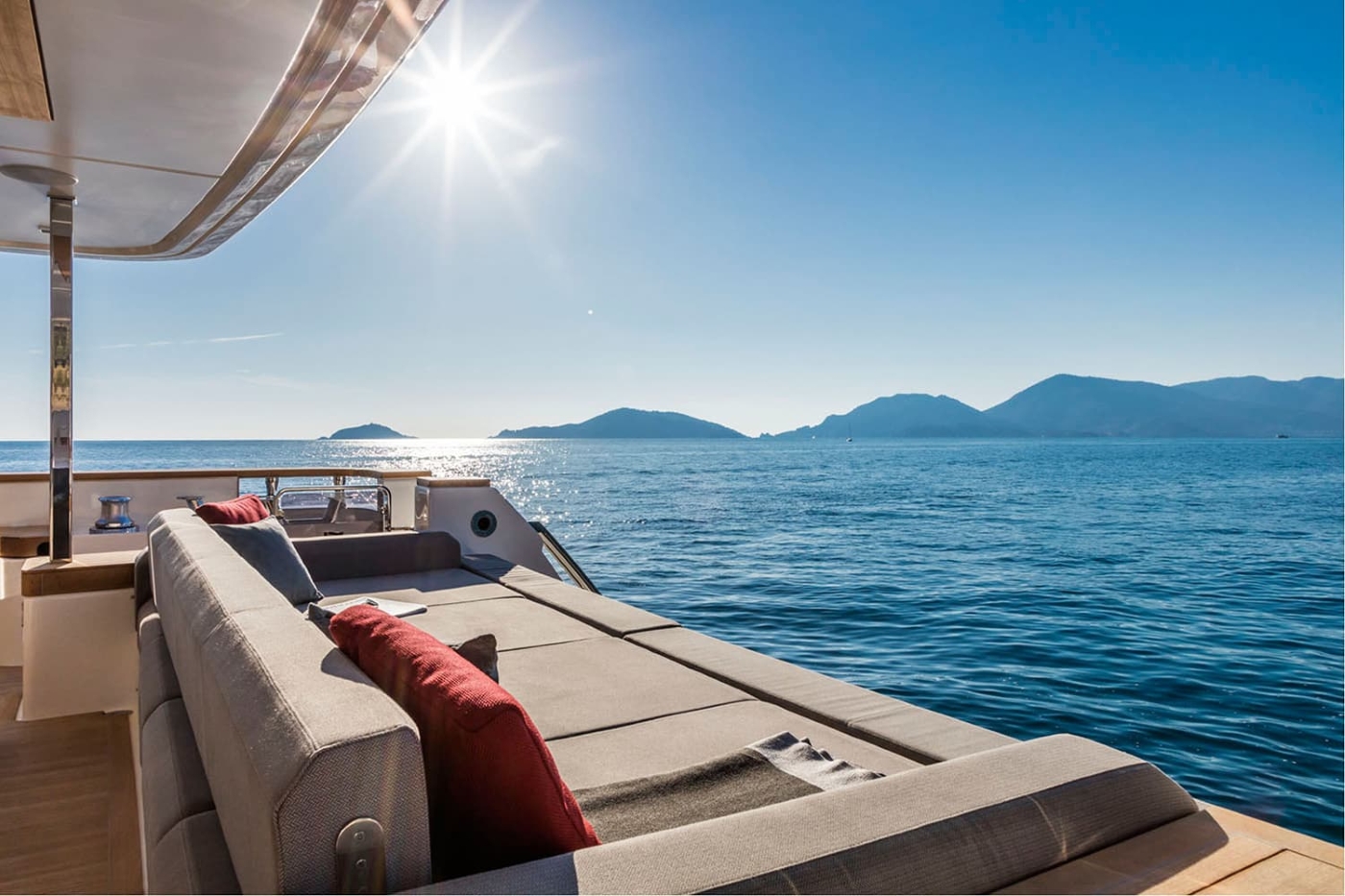 The yacht is capable of hosting up to 11 guests overnights, with a five-cabin layout, while a crew of 6 ensures impeccable services aboard at all times.