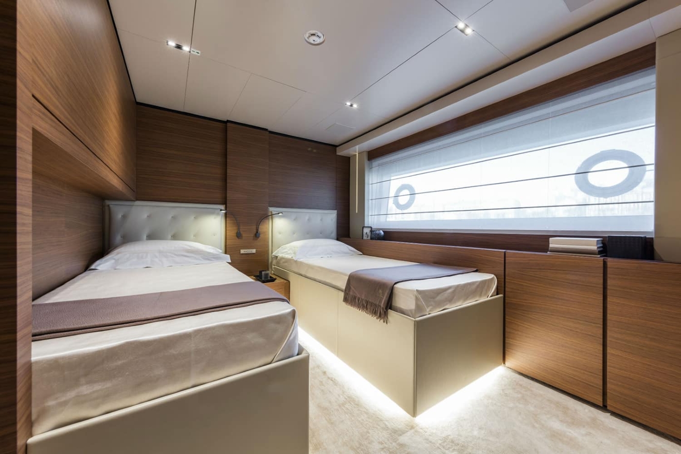 The yacht is capable of hosting up to 11 guests overnights, with a five-cabin layout, while a crew of 6 ensures impeccable services aboard at all times.