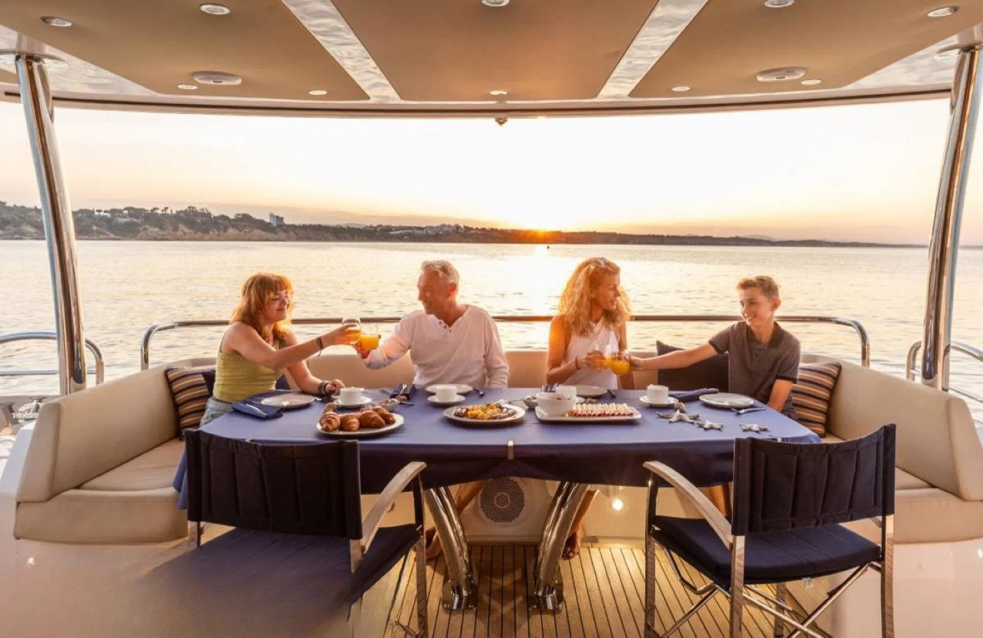 Some of the main stand-out features include a centre rise and a TV that separate the elegantly decorated saloon from the formal dining area. Forward, on the observation area there is a breakfast bar, a day head and the galley.