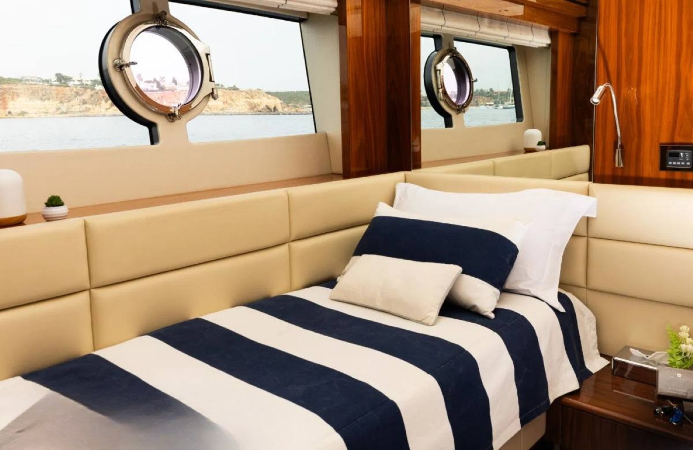 She was built by the UK shipyard Sunseeker in 2015 and offers accommodation for up to 8 guests in a flexible 4-cabin layout. A crew of 4 ensures everyone has an enjoyable holiday and receives impeccable service at all times.