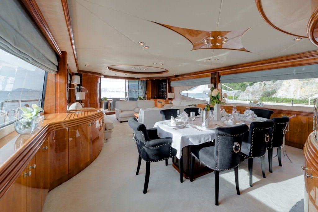 Accommodation is situated both on the main deck (VIP suite) as well as below deck (master and two twin cabins) with ensuite facilities.
