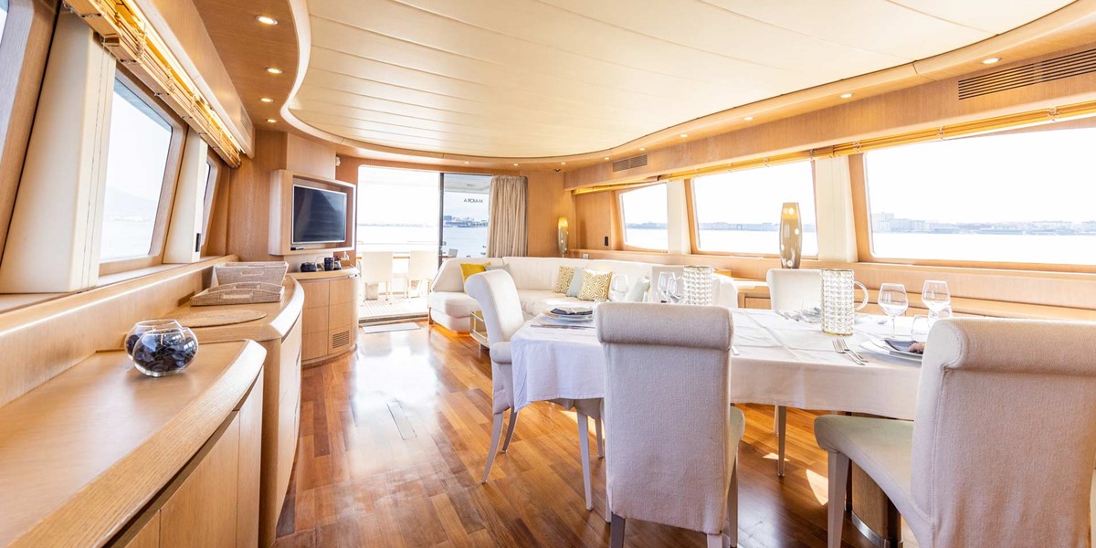 NOTABLE FEATURES: ~ Lovely light interiors with clean decor ~ comfortable accommodation for up to 9 pax ~ numerous dining areas ~ panoramic windows in saloon ~ Lovely flybridge for entertainment ~ air-conditioning ~ WiFi