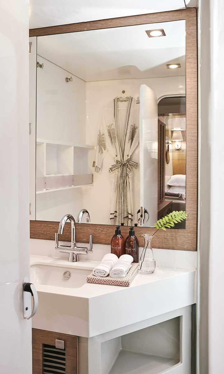 NOTABLE FEATURES for PELICAN: Exceptionally spacious design ~ Beautifully finished open plan salon with integrated dining ~ Four double ensuite cabins ~ Alfresco dining ~ Water toys ~ Wi-fi