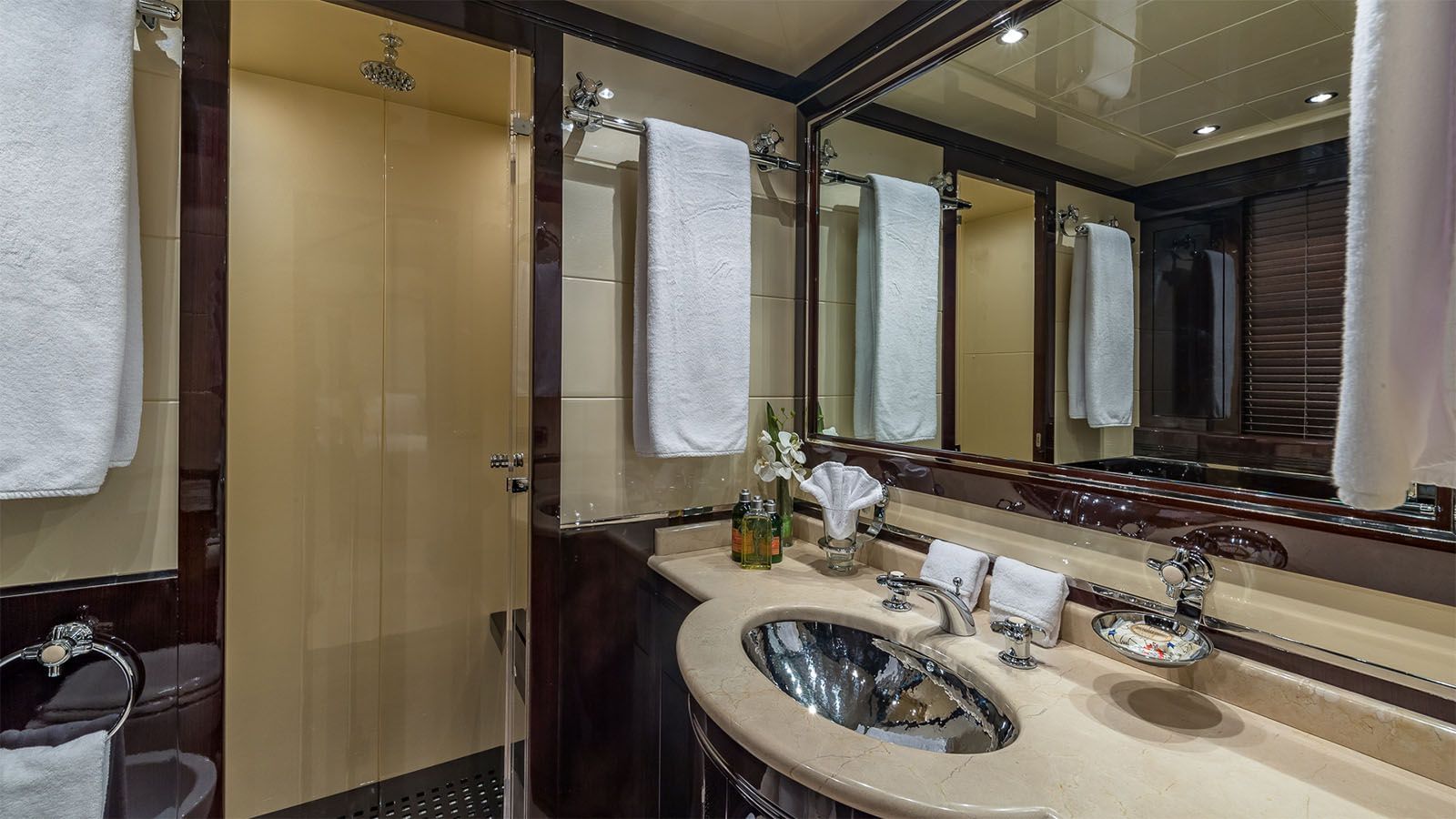 NOTABLE FEATURES OF JOMAR: ~ Sleek, fast and sporty ~ Main deck Jacuzzi ~Multiple sunbathing areas ~Salon wet bar ~ 5 stateroom layout accommodates 10 guests ~ Master suite with lounge ~Master suite bathroom with steam shower ...
