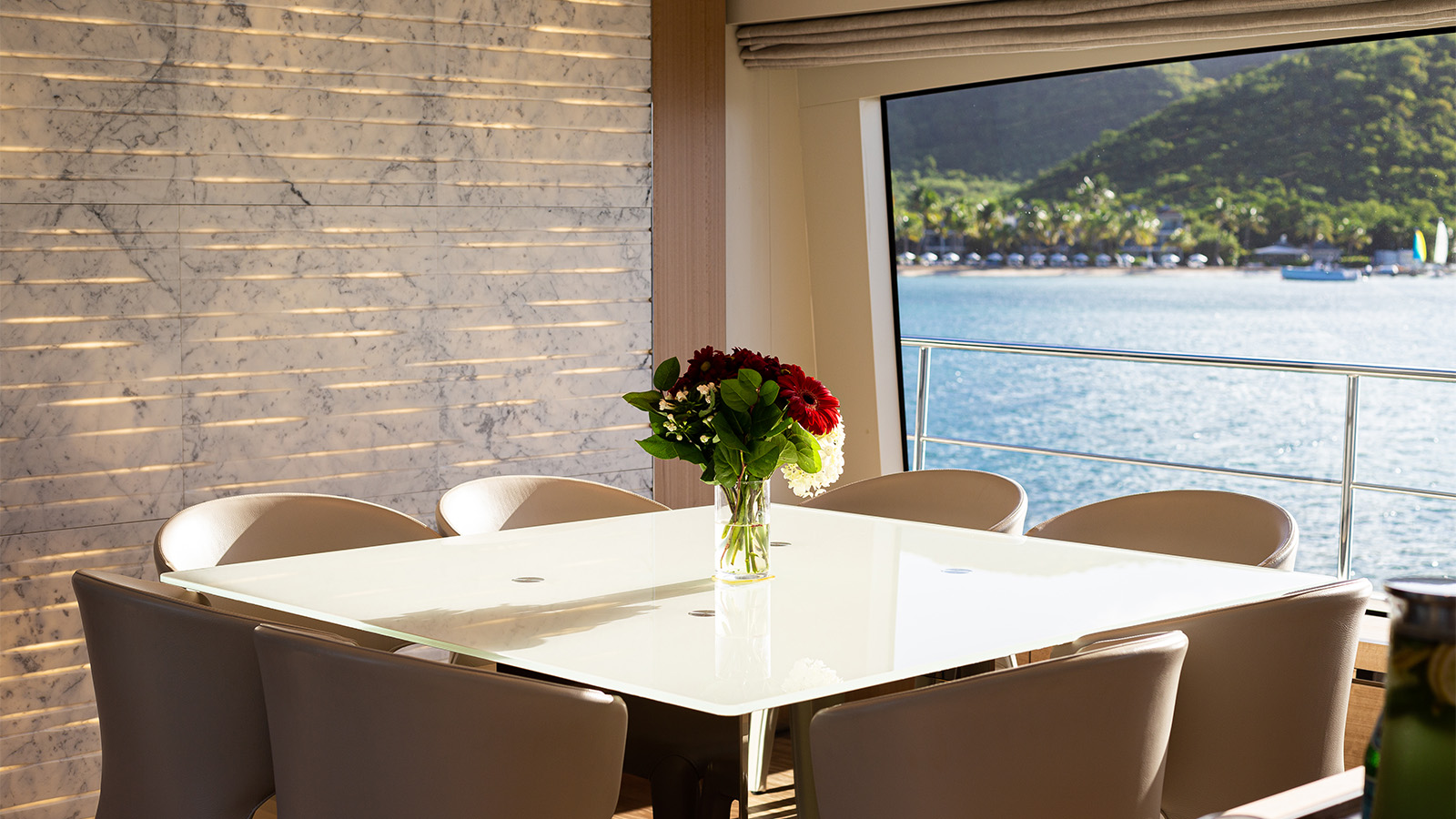 NOTABLE FEATURES OF SQUALO: ~Flybridge wet bar and grill ~Chic modern interiors ~Close beach access using shallow draft of 1.7m/5.7ft ~Great collection of water toys ~Top speed of 30 knots ~Air ...
