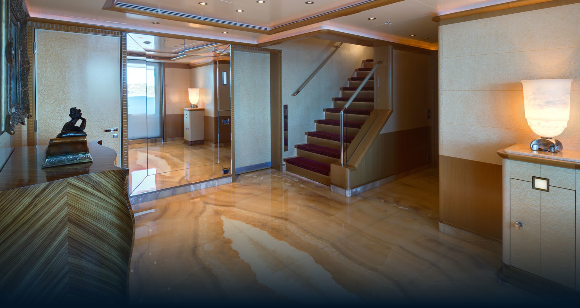 This is a dry dock for the custom built tender which disembarks guests directly inside the yacht which can be “flooded” when the tender is outside and forms a 12 metre swimming pool with underwater lighting and steps. Port side in this area is home to the 6 waverunners. This area also features a wet bar and bathroom with steam shower.