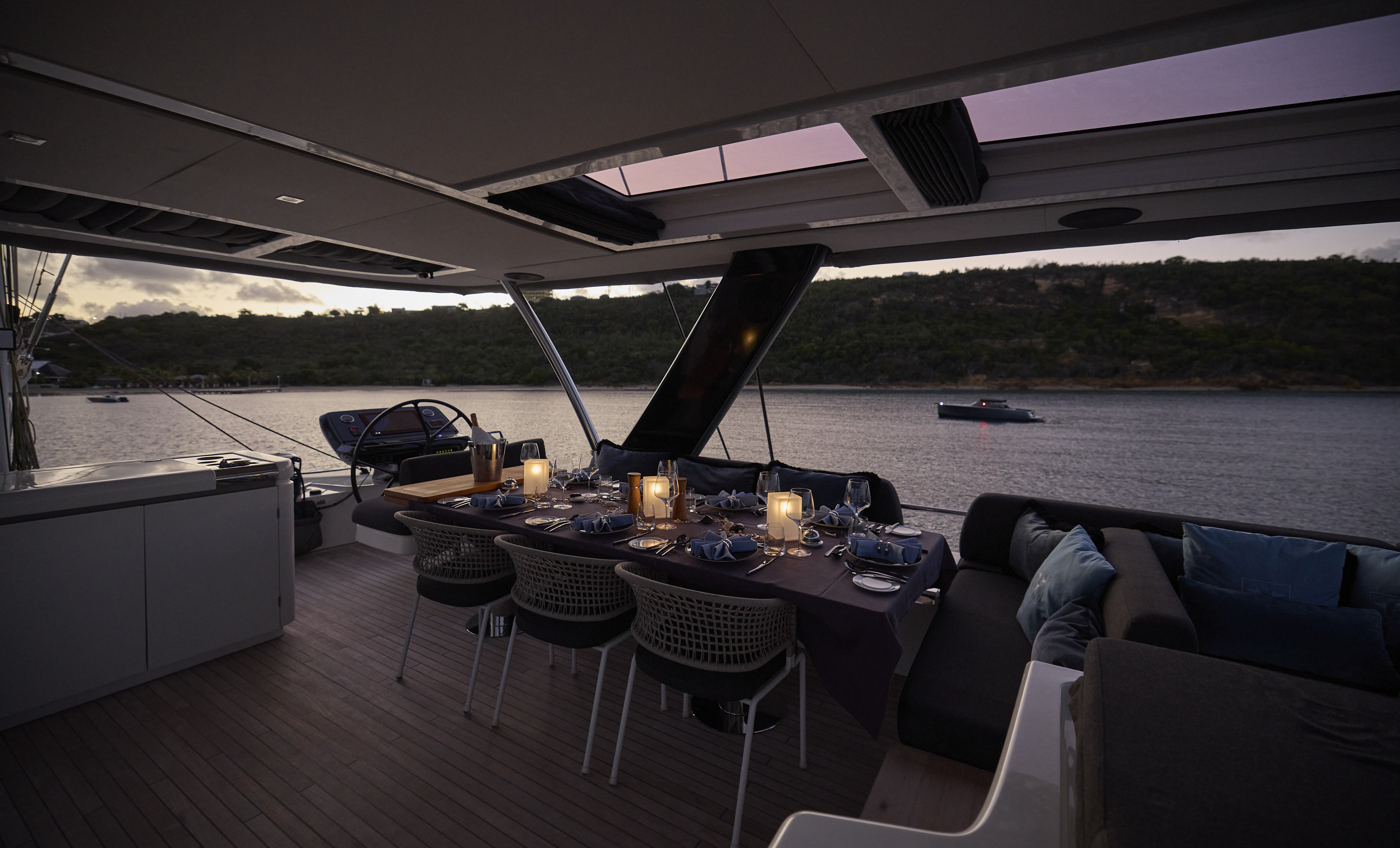 NOTABLE FEATURES OF LA GATTA: ~Sundeck Jacuzzi and bar ~Choice of alfresco dining areas ~Spacious guest accommodation ~Shallow draft of 1.9m/6.3ft for close beach access ~Air conditioning ~Wi-Fi