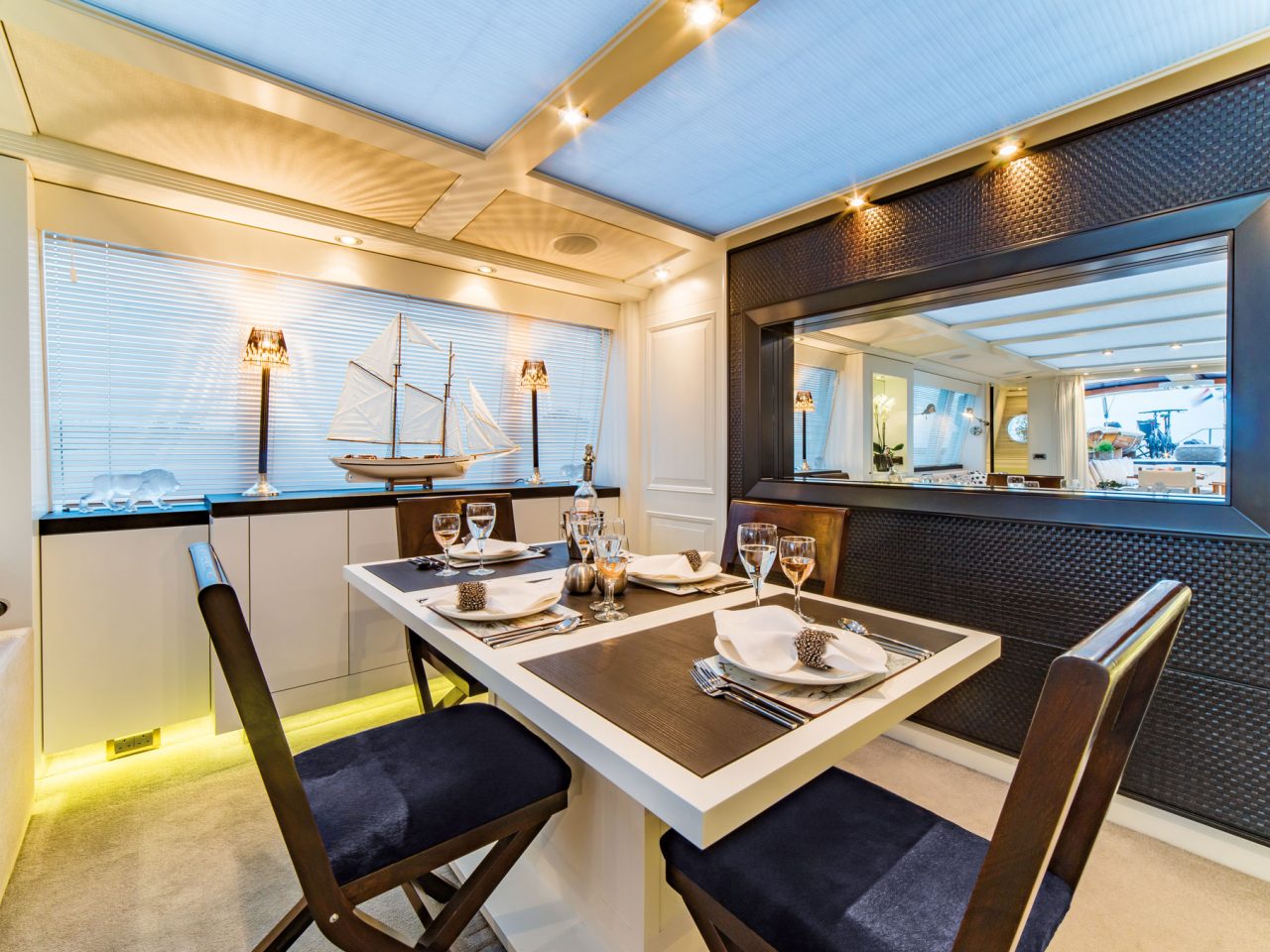 Her shallow draft of only 1m/3.3.ft makes her excellent for traversing shallow waterways, and there is plenty of space inside and out for social gatherings, dining and relaxation. The accommodation provides for up to 5 guests over three en-suite cabins, with a professional crew of 3 to take care of every detail.