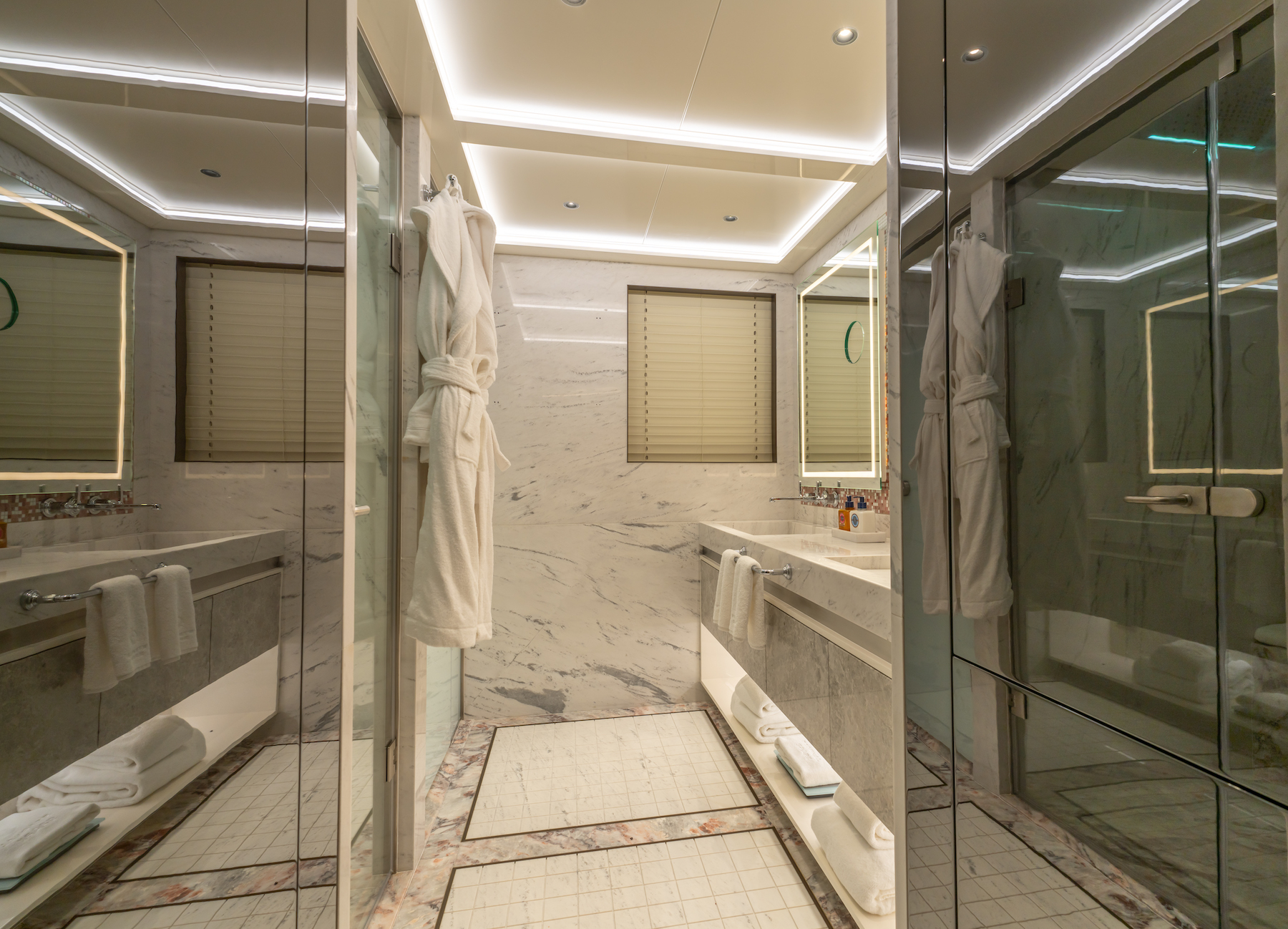 The interiors can be personalised by the Owners' choice of designer, and the accommodation provides for up to 12 guests over six en-suite cabins.