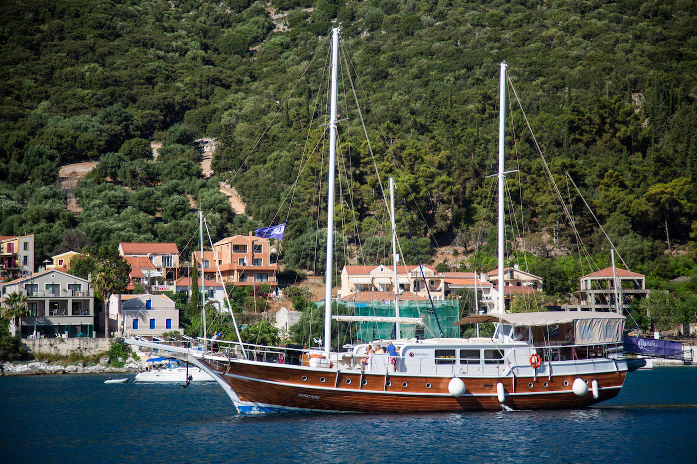 motor sailer yacht APHRODITE provides yacht charters in The Mediterranean, Europe, Classic, Skiathos, Rhodes, Paros, Lefkas, and Kos.
