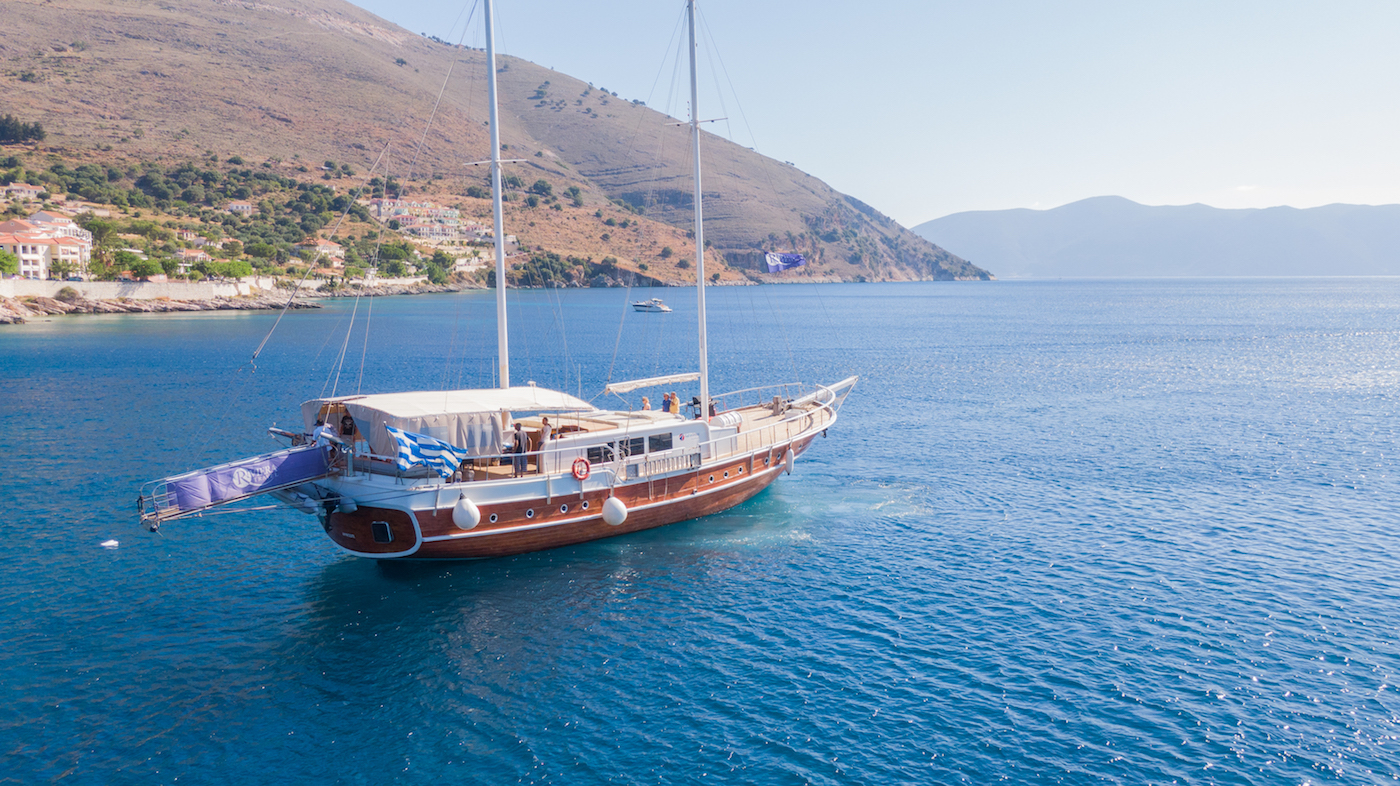 motor sailer yacht APHRODITE provides yacht charters in The Mediterranean, Europe, Classic, Skiathos, Rhodes, Paros, Lefkas, and Kos.