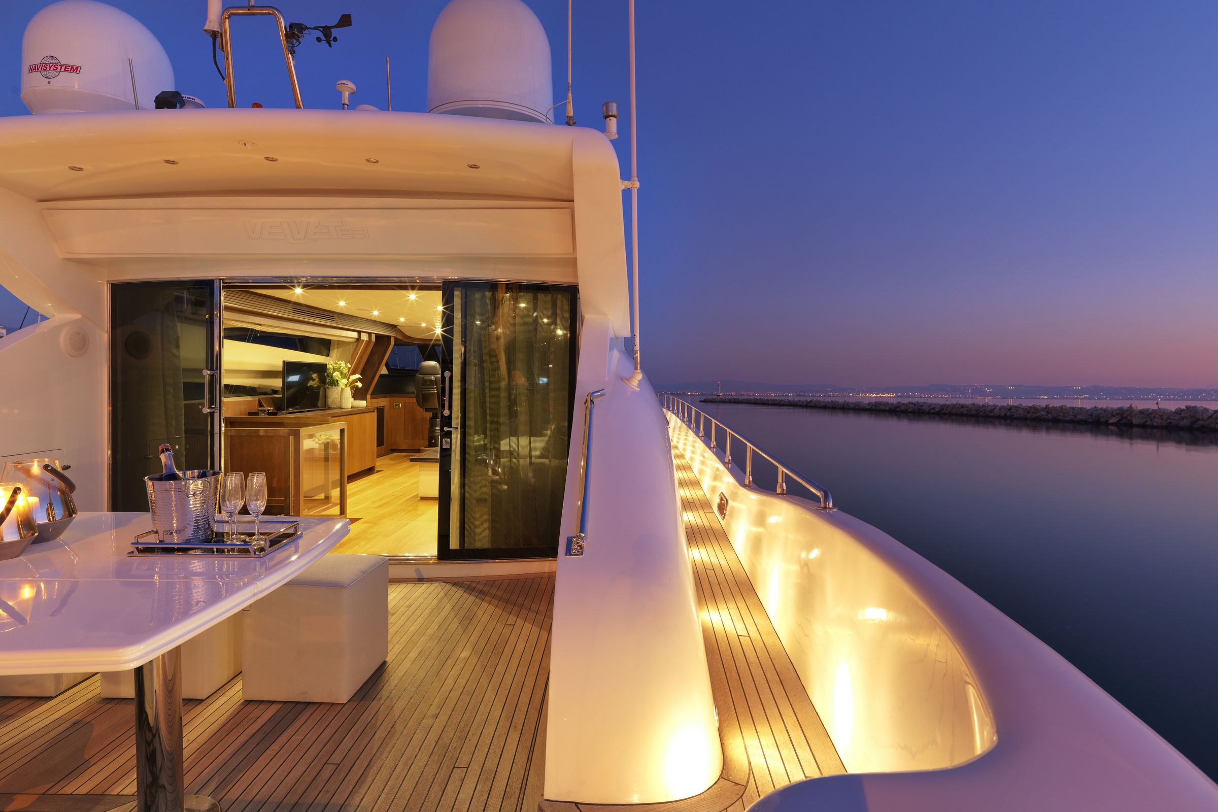 Built by Tecnomar, luxury motor yacht RUBY is a very fast vessel offering performance combined with comfort and inviting decor. She measures 26.80m (87' 11") and offers accommodation in 4 cabins for up to 8 charter guests in board.