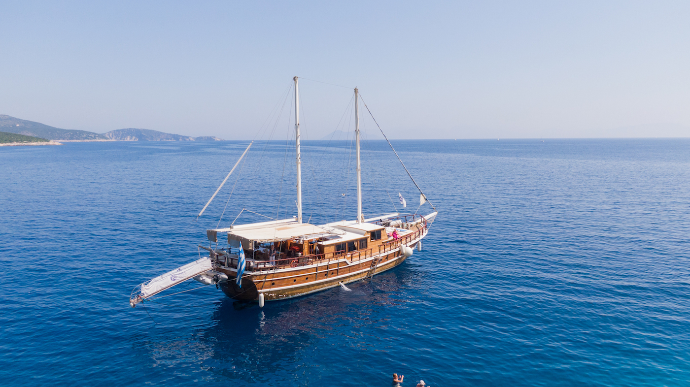 motor sailer yacht HARMONIA provides yacht charters in The Mediterranean, Europe, Classic, Skiathos, Rhodes, Paros, Lefkas, and Kos.