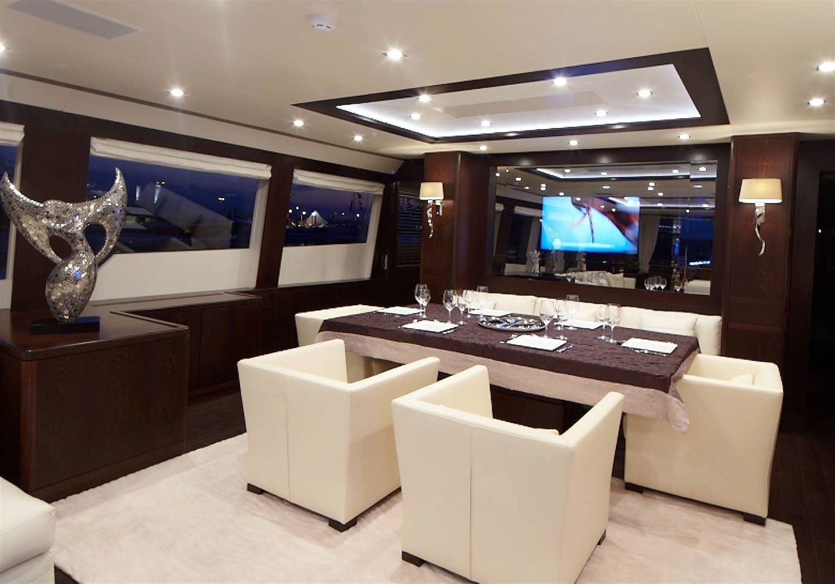 A sunbed covers the aft section and it joins into the sofa that becomes part of the alfresco dining setting.
