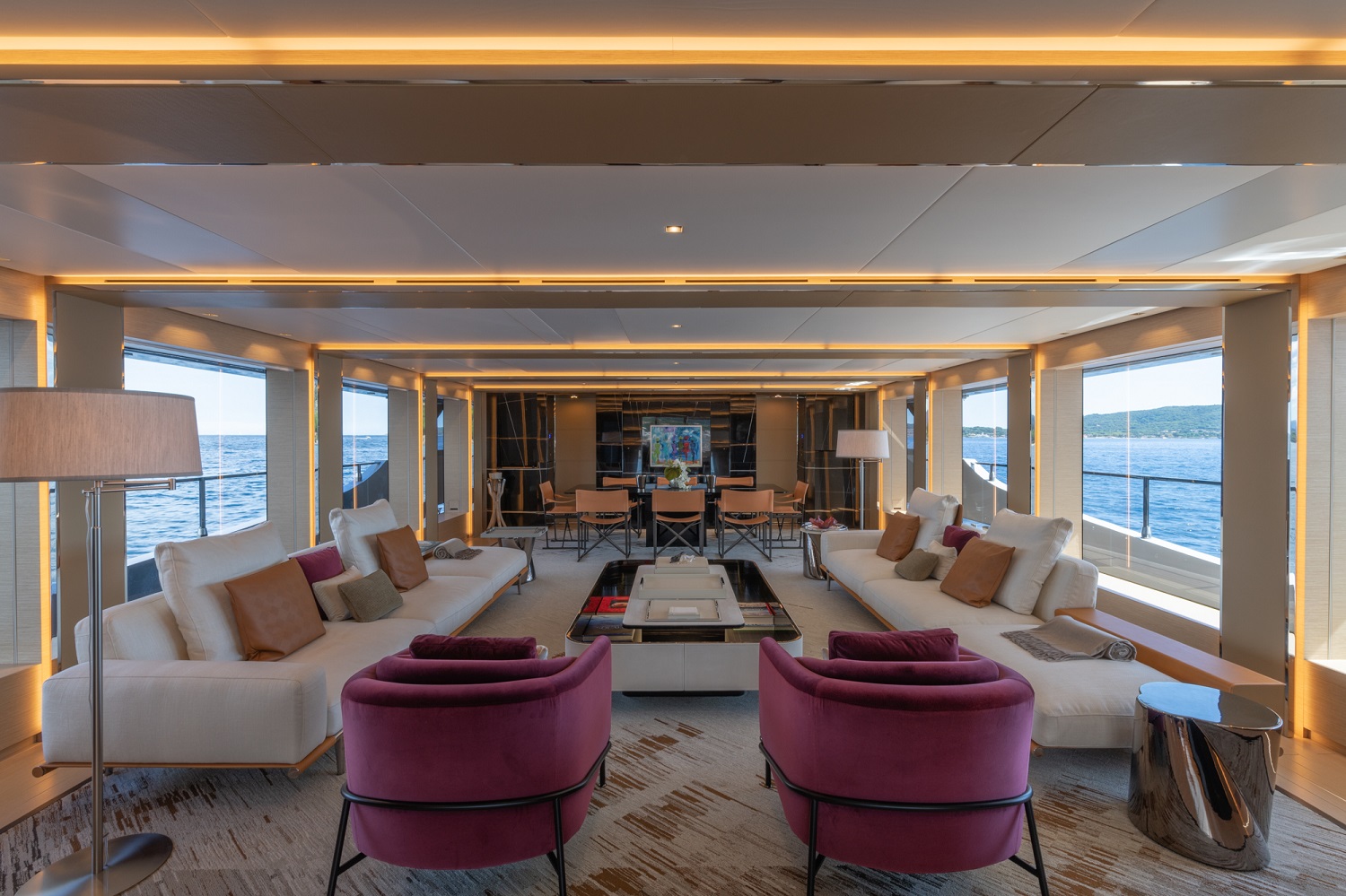 The lower deck hosts the guest cabins and crew accommodation, and the stern contains a ...