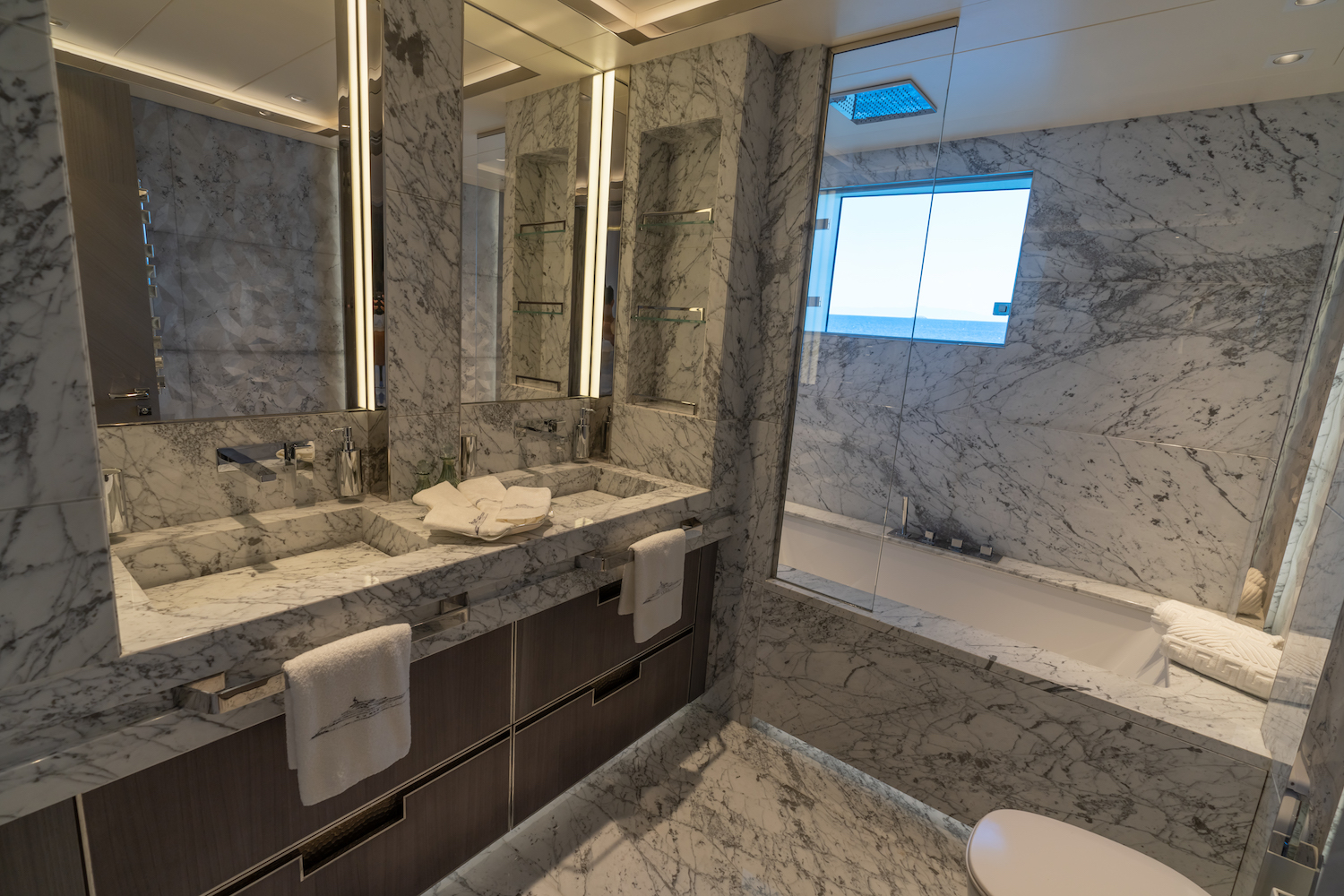 She is the first of the Bilgin 263 series, showcasing striking exterior lines and modern interiors with huge deck spaces and innovative contemporary layout. The yacht accommodates up to 12 guests in 8 deluxe suites and a crew of 20.