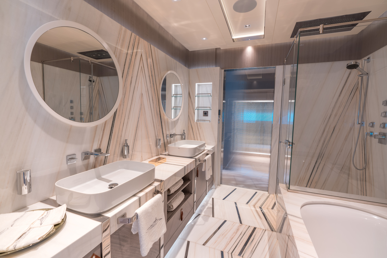 Accommodation on board spreads over 8 deluxe cabins, sleeping up to 12 guests, while there is also accommodation for a crew of 20.