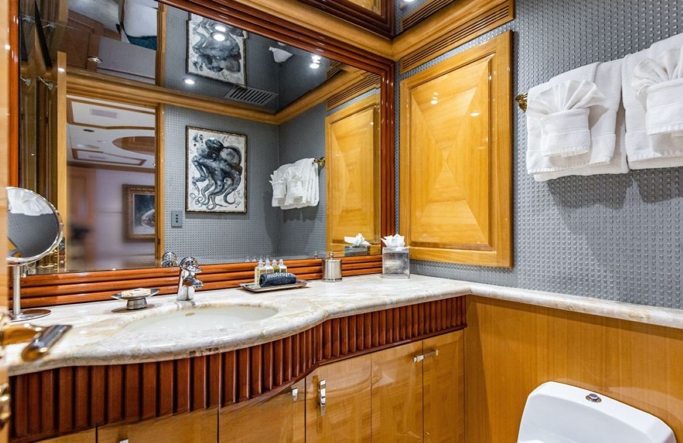 A bar in the starboard aft corner is ideally situated to serve guests in the lounge and formal dining area.