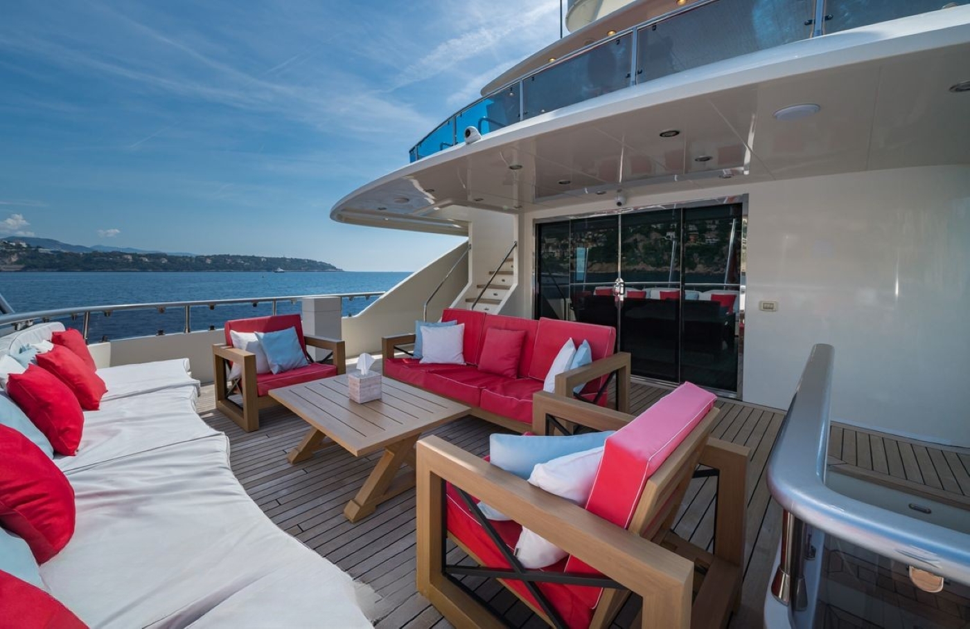 NOTABLE FEATURES OF IRAMA: ~Sundeck Jacuzzi ~Ambient interiors ~Separate formal dining area ~Main salon bar ~Upper deck Master suite with private outdoor area ~VIP stateroom equivalent to second Master suite ~Cruising range of ...