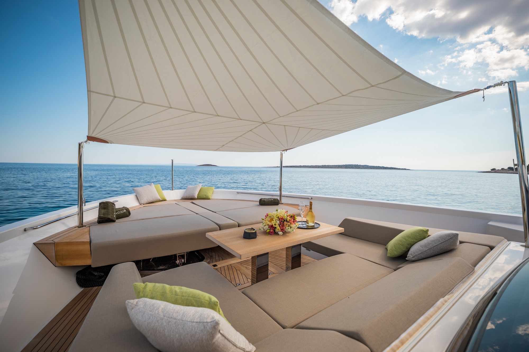NOTABLE FEATURES: ~ modern exterior and interior design ~ fabulous flybridge with Jacuzzi ~ comfort ~ luxury ~ performance ~ safety ~ great for families ~ excellent choice of water toys ~ stabilisers ~ air-conditioning ~ ...