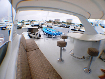 The forward stateroom features a queen sized bed full en-suite bath with shower and entertainment system. Lucky Me has a fly bridge which features a bar with stools, BBQ grill, and nice lounging areas. The main salon features a large TV, Direct Satalite Service, CD and VCR.