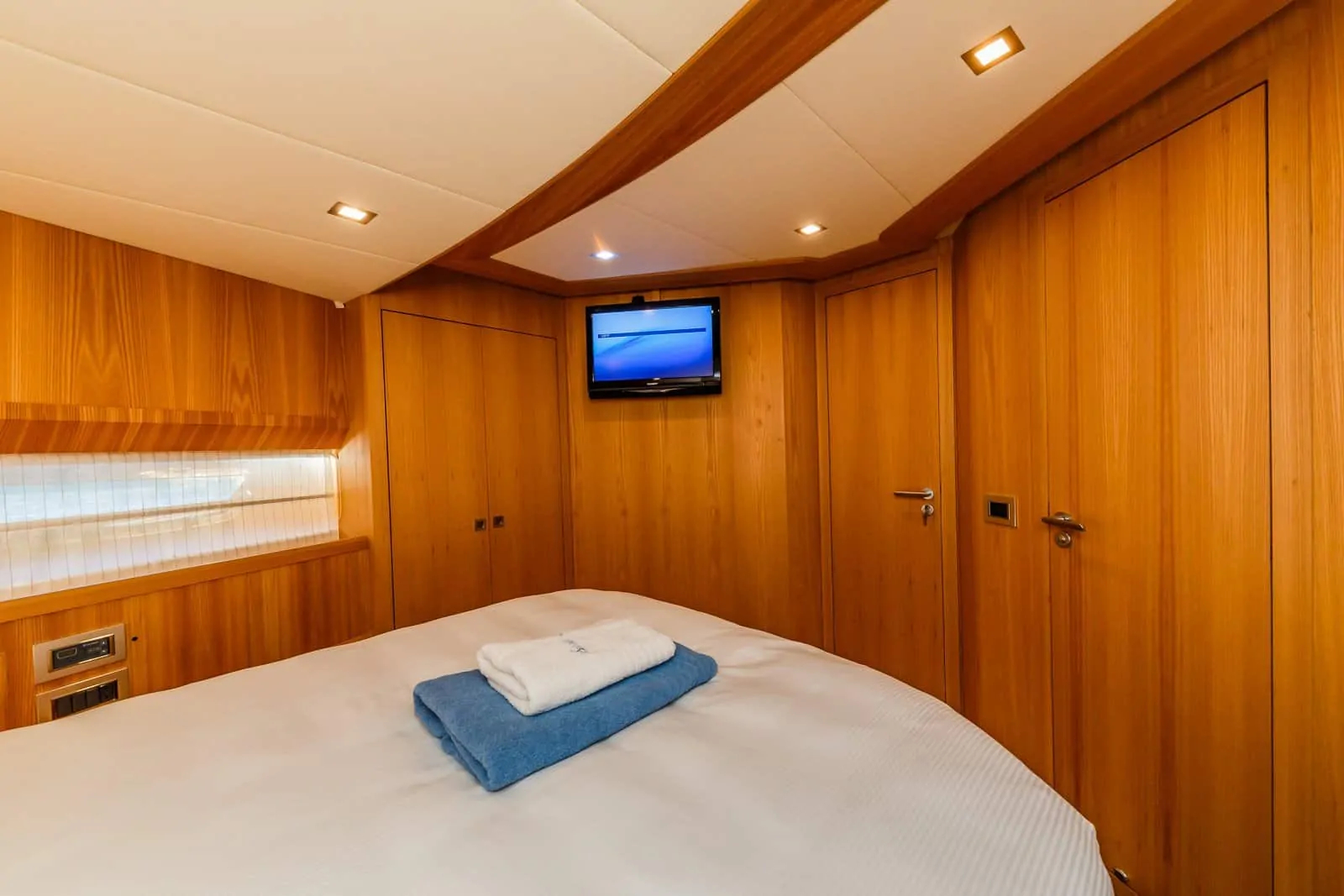 Motor yacht SECRET LIFE (ex Into & Fra) measures 22.2m (72’10’’) in length and offers comfortable accommodation for up to 8 charter guests in 4 cabins on the lower deck. Her crew of two offers great service during the entire charter vacation, including personalised cuisine.
