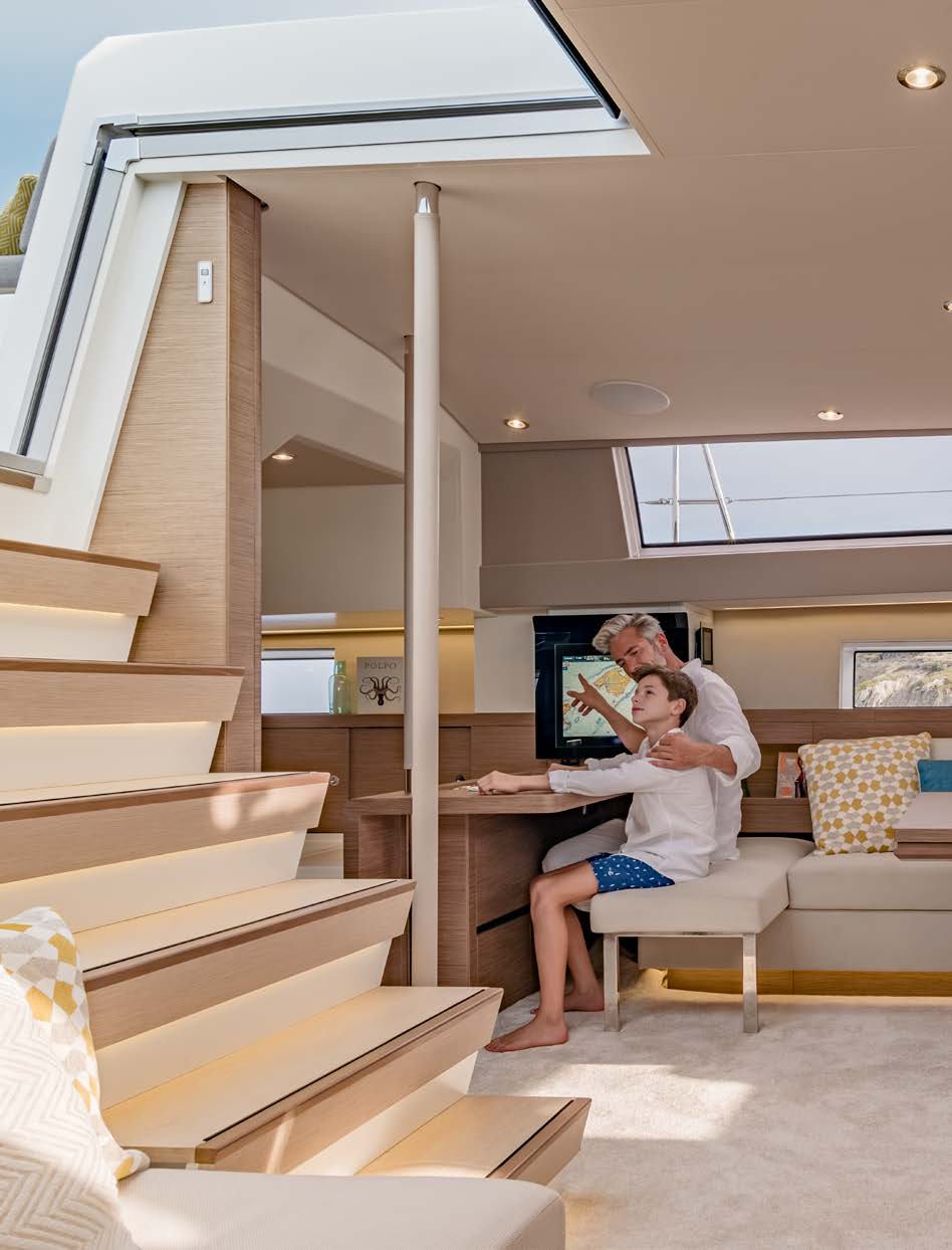 Jean-Marc Piaton and Rafael Bonet created her stylish interiors. With a beam of 5.51m (18'07"), yacht CNB 66 provides accommodation for up to 6 guests in three cabins.