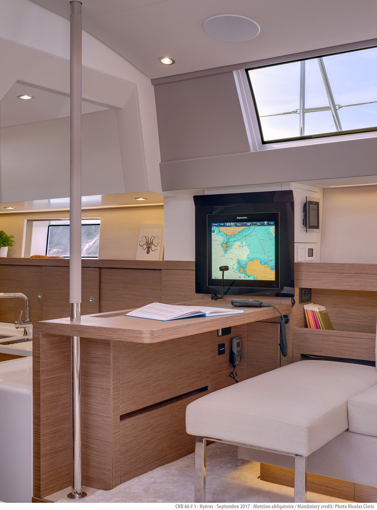 Jean-Marc Piaton and Rafael Bonet created her stylish interiors. With a beam of 5.51m (18'07"), yacht CNB 66 provides accommodation for up to 6 guests in three cabins.