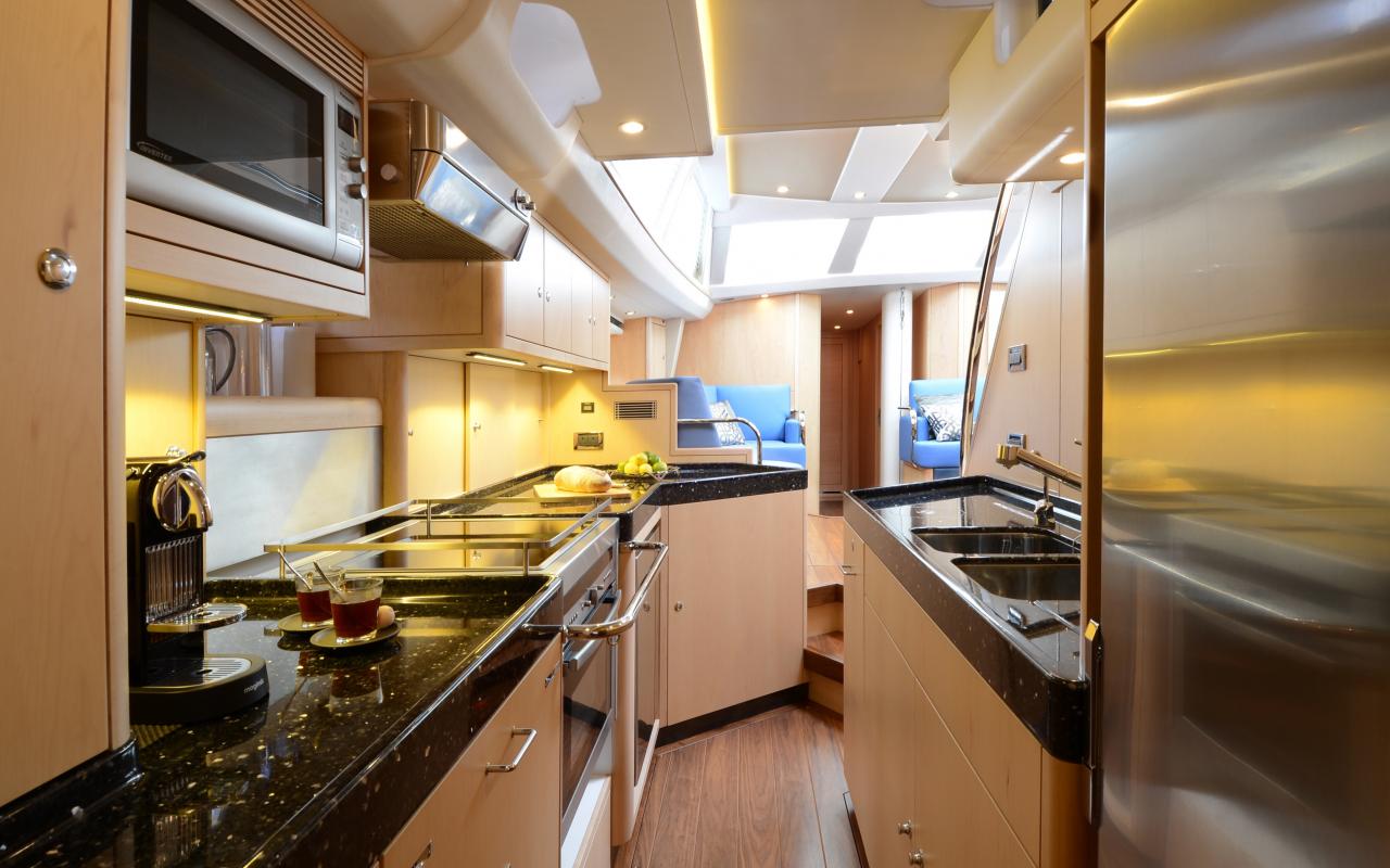 There is an optional bimini to create full shade. The aft deck features fitted rail seats to admire the views, watch the sunset and this elegant yacht to ply the waves.