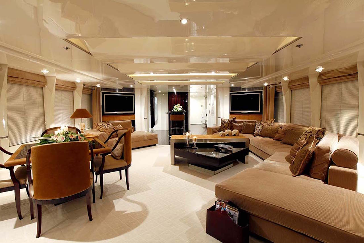 The lower deck of this super yacht VERA accommodates all of the bedrooms, and the main deck features the main salon with a large flat screen TV with SAT TV.
