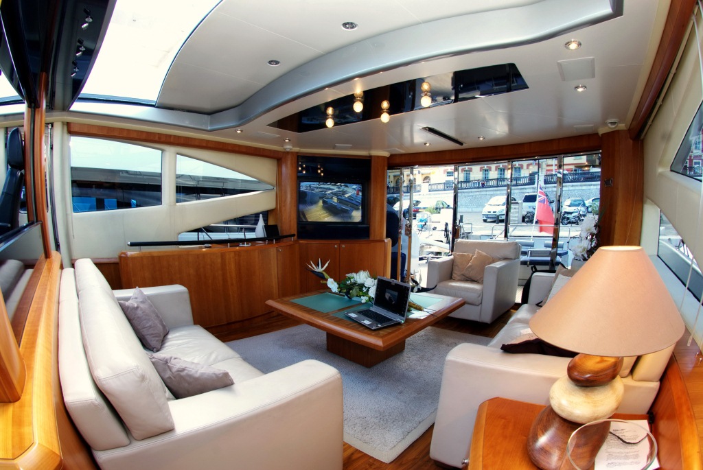 Charter yacht ORACLE STAR I features a light airy salon by Design Unlimited boasting a modern and minimalistic ambiance.