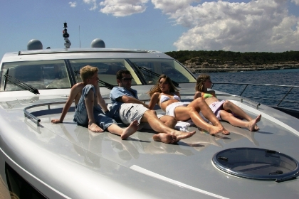 Forward on the yacht there is a very large sun bathing area with comfortable lounge cushions to relax on.