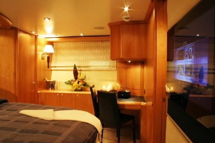 The owner’s stateroom is full beam aft with a large dressing room and private ensuite. The VIP stateroom is forward also with its own private ensuite, and the guest cabins (one double and one twin) are port and starboard, both with private ensuites.