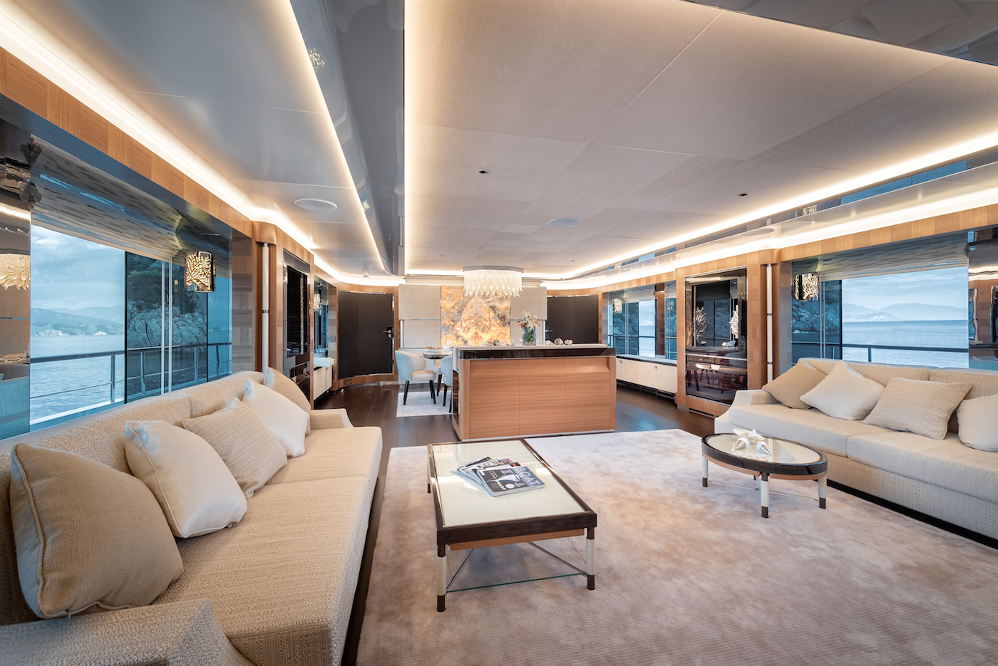 The yacht features naval architecture by Ginton Naval Architects with design by Hot Lab. She can accommodate up to 12 guests in 6 cabins with a crew of 9 onboard and represents an outstanding charter yacht.
