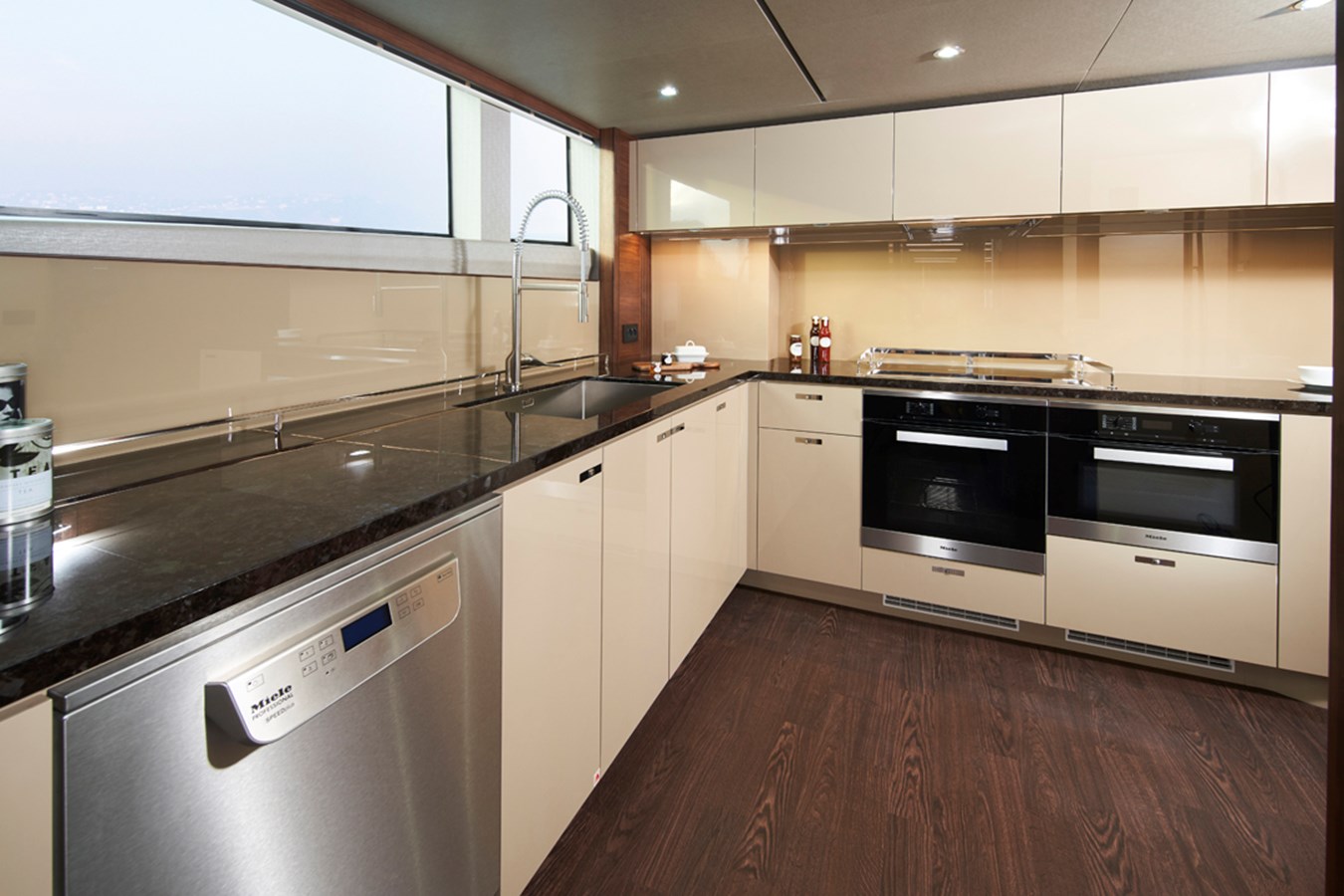 The main deck aft is equipped with a large U-shaped sofa - perfect for relaxing and spending time with the loved ones.