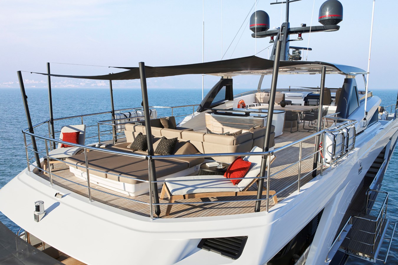 The yacht offers modern design, great performance and comfortable accommodation, sleeping up to 10 guests in 5 cabins, serviced by a crew of 5 professionals.