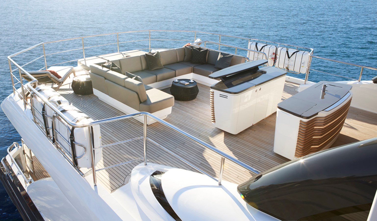 The yacht offers modern design, great performance and comfortable accommodation, sleeping up to 10 guests in 5 cabins, serviced by a crew of 5 professionals.
