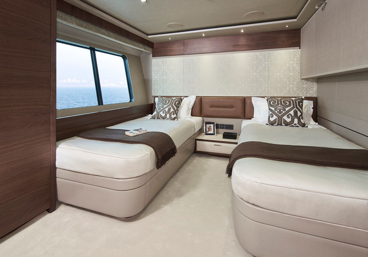 The yacht offers modern design, great performance and comfortable accommodation, sleeping up to 10 guests in 5 cabins, serviced by a crew of 5 professionals.