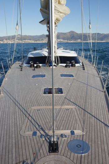 The yachts flush finished deck, dark blue hull, low profile saloon windows and the towering carbon rig are all features that will turn heads while offering safety, comfort and speed for guests on board.
