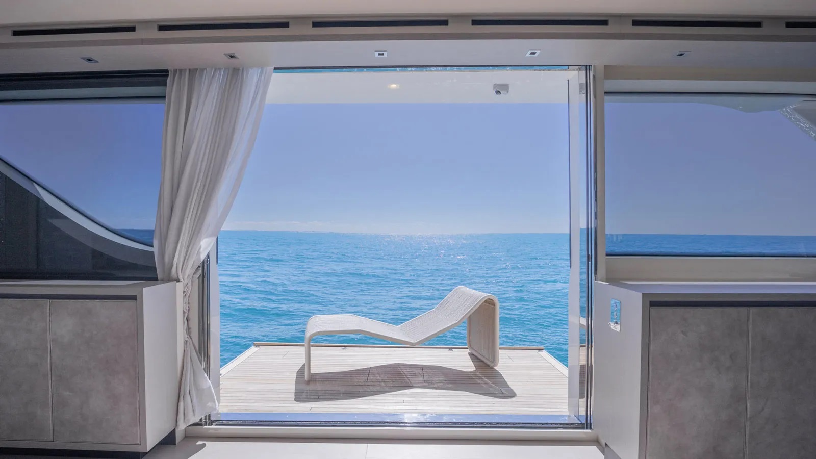 The Jacuzzi is located on the flybridge, while the sun loungers are on the sundeck. The spacious seating area