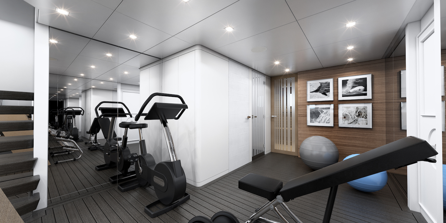 This is followed by the elegant sky lounge, which becomes even more atmospheric after dark. A wet bar is placed to port and a widescreen TV is mounted on the forward wall close to the starboard hallway.