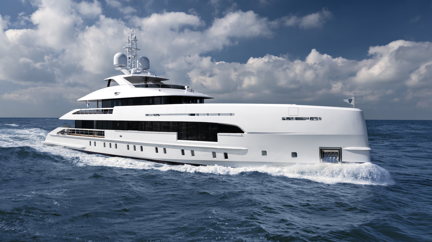 The white hull joins seamlessly with the superstructure, and dark floor-to-ceiling windows from the main deck up create areas of contrast while providing the practical benefit of plenty of light and panoramic views from the ...