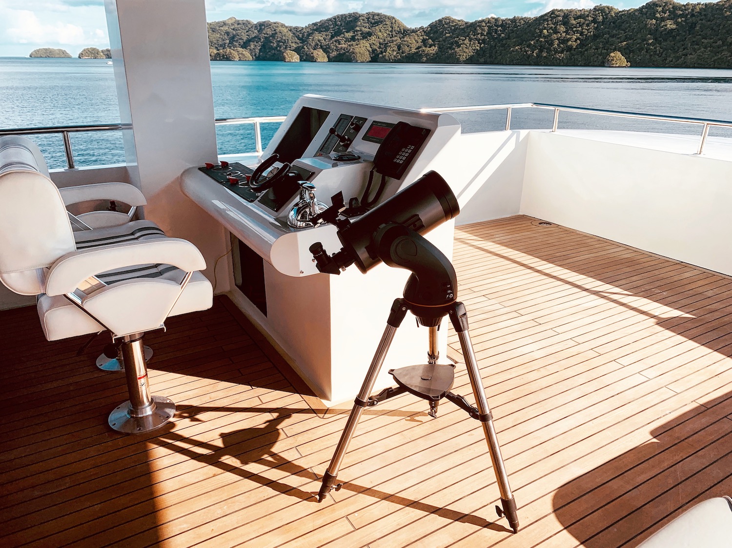 Side walkways lead around to the sun-exposed foredeck where sun loungers can be laid out in front of the helm station and there is ample space for exercise such as yoga.