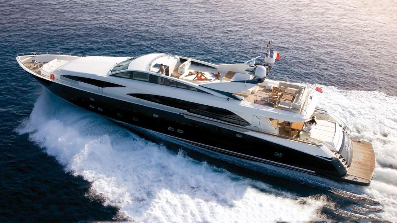A Guy Couach 2007 37m 3700 fly bridge luxury motor yacht is available for charters in the Mediterranean.
