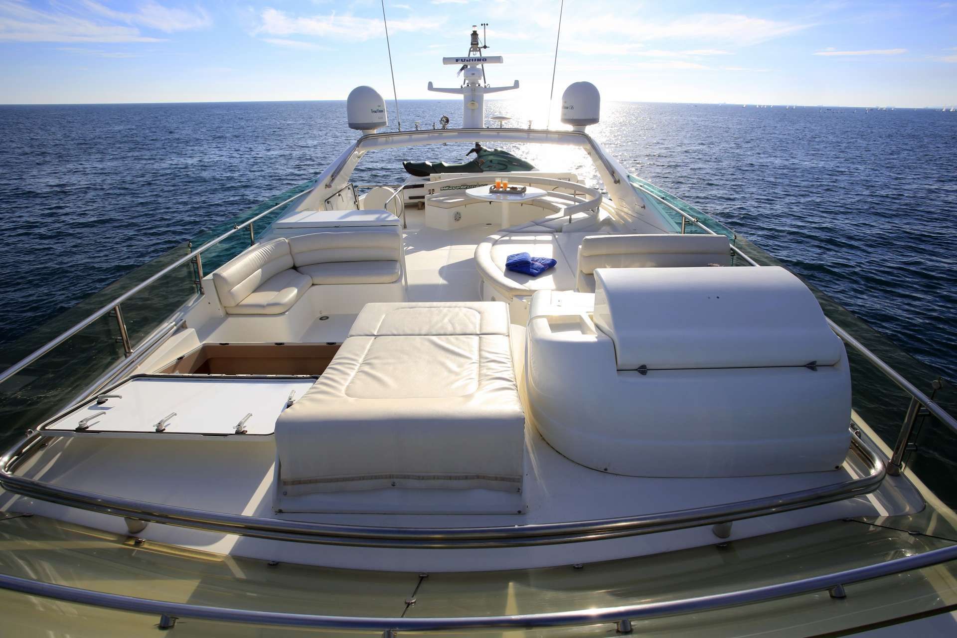 The main deck aft has a spongy sofa along the stern, a large table and additional chairs for casual alfresco dining.