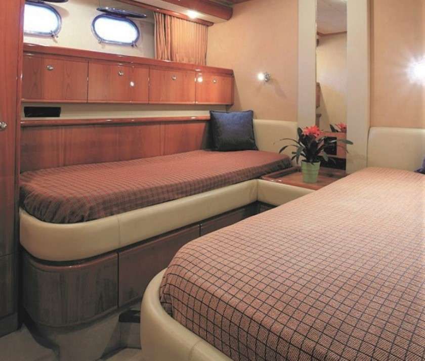 Motor yacht ADE YIA was built by the Italian shipyard Ferretti in 2004 and refitted in 2016. She measures 23.15m (75' 11") and can accommodate up to 8 charter guests in 4 cabins, with a professional crew of 3 on board.