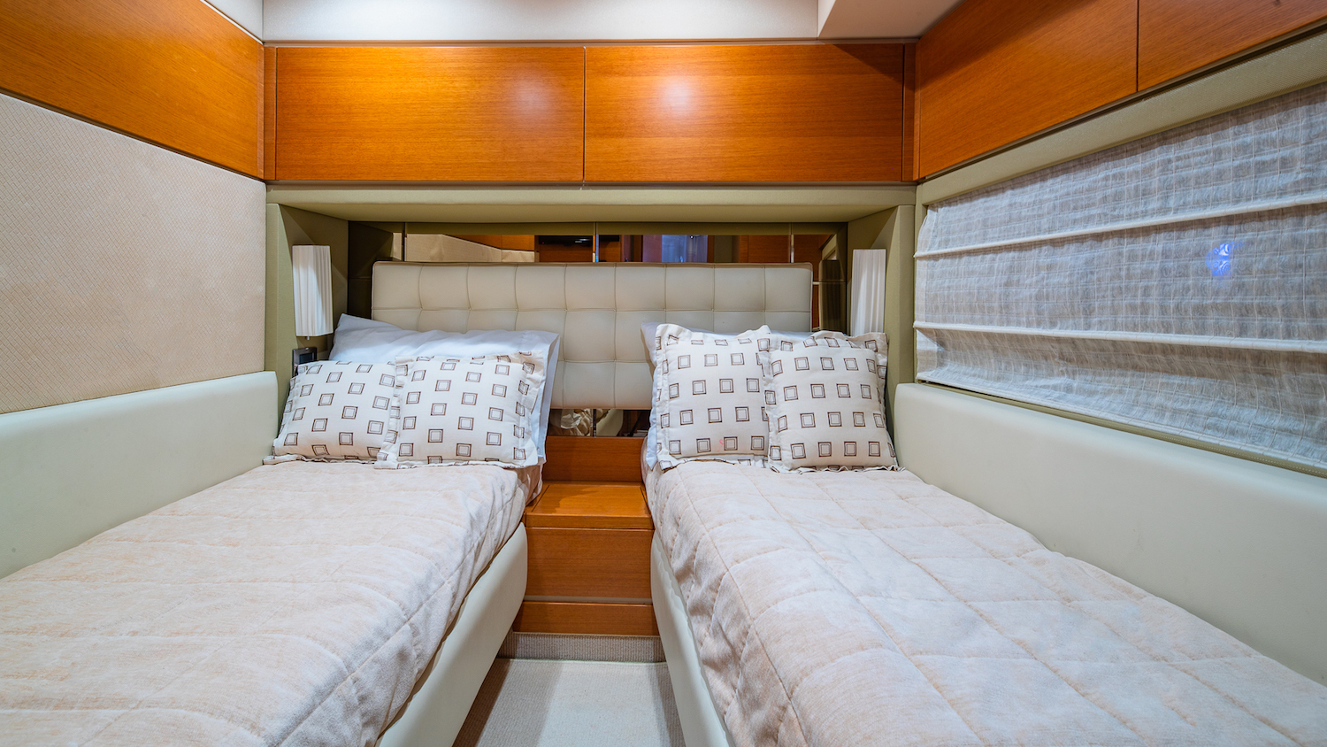 At 21.62m/70.11ft, there is plenty of space on board for 9 guests while cruising, and for six guests to sleep on board in three en-suite cabins.
