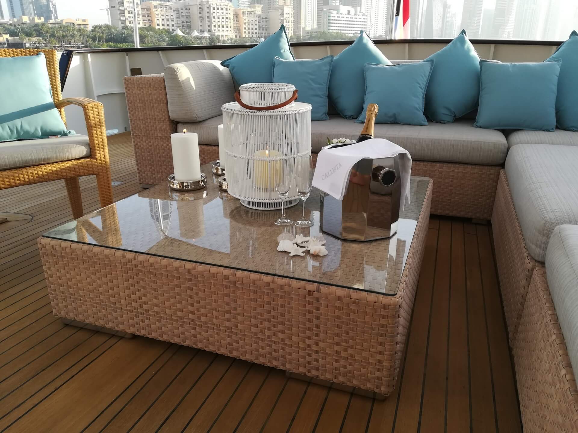 The decks on board this luxury motor yacht are spacious and comfortable.