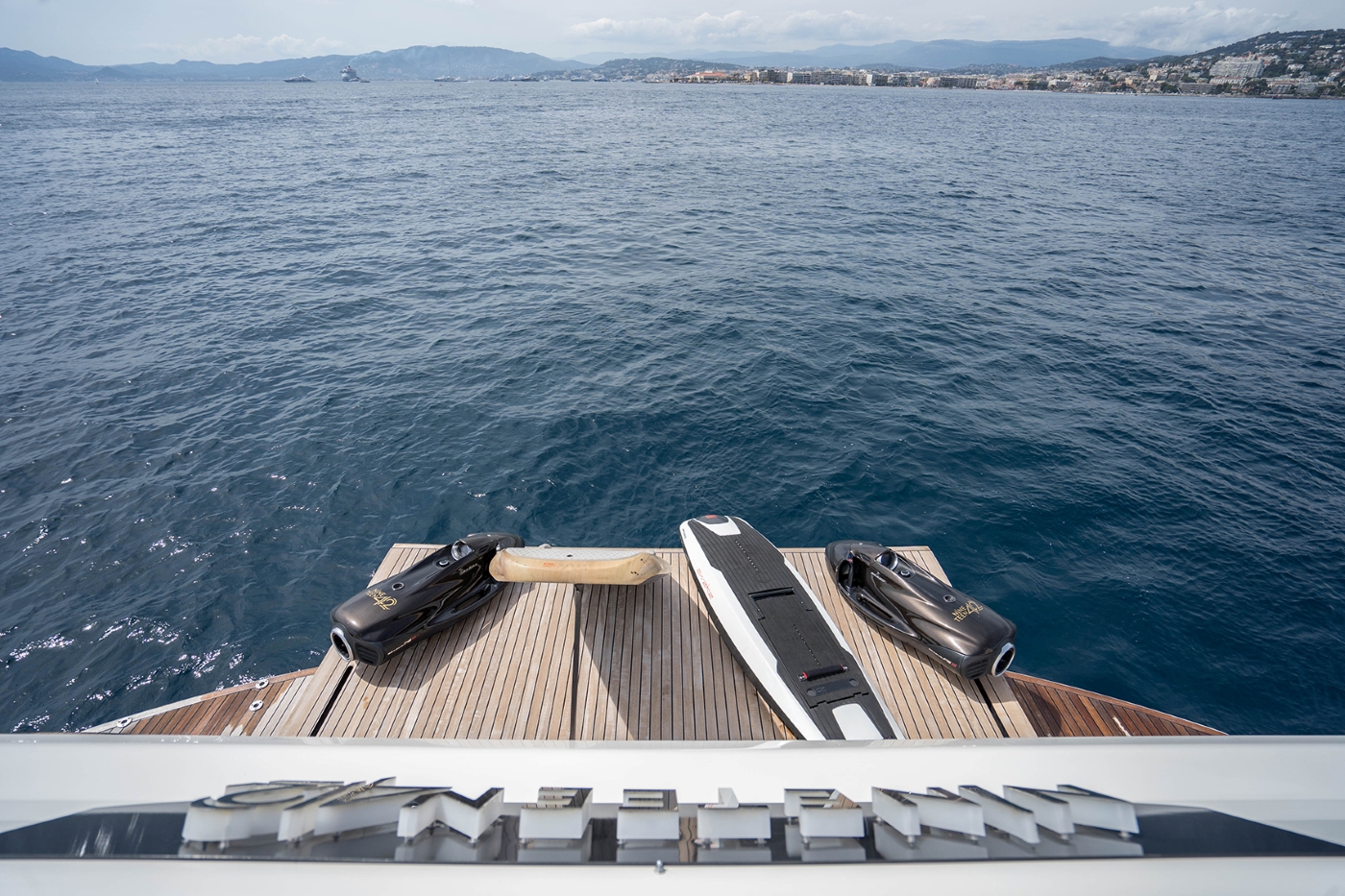 NOTABLE FEATURES OF Nineteen 42: ~Fly bridge wet bar ~Beautiful interiors ~Spacious guest cabins ~Great collection of water toys ~Top speed of 24 knots ~Air conditioning ~Wi-Fi